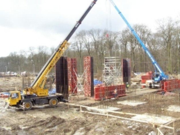 żuraw Liebherr LTM 1030 - zbrojenie i szalowanie podpory