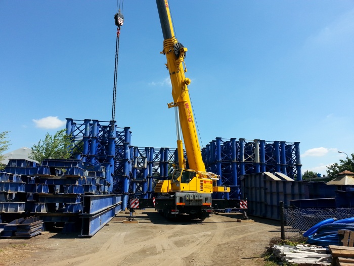 Rozładunek konstrukcji 35t żurawiem Liebherr LTM 1200